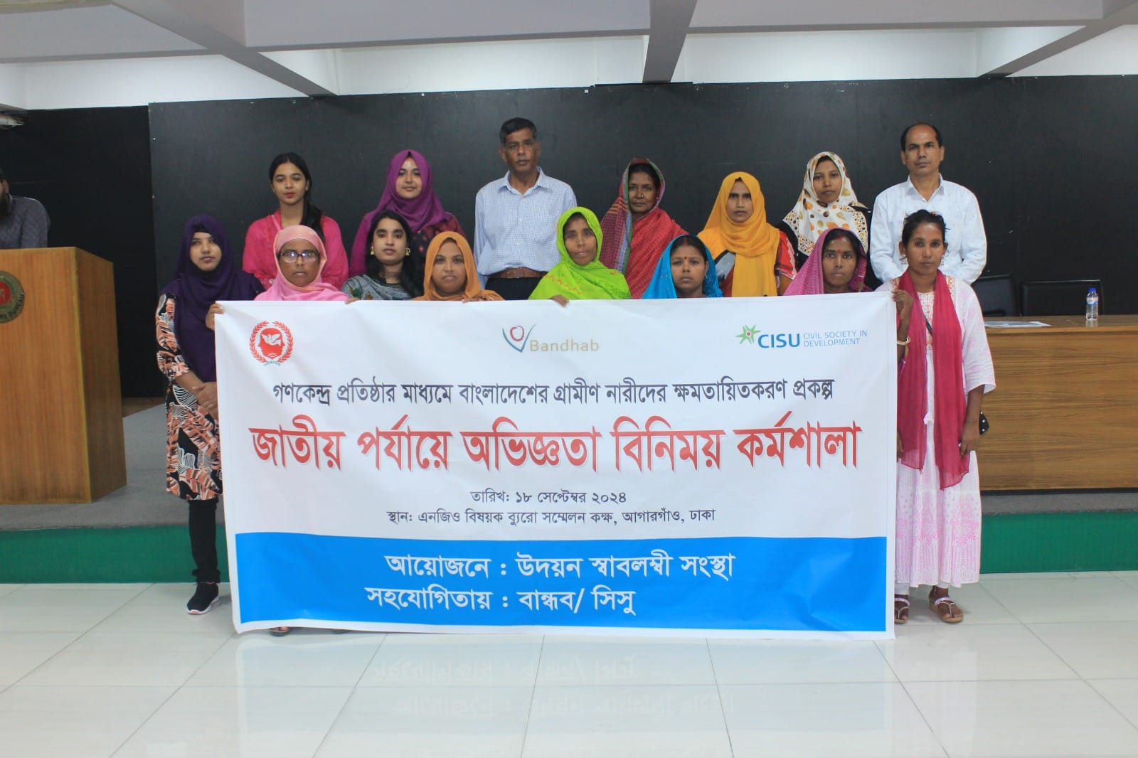 ঢাকার আগারগাঁওয়ে এনজিও বিষয়ক ব্যুরোর সম্মেলন কক্ষে উদয়ন স্বাবলম্বী সংস্থার বাস্তবায়নে নারীর ক্ষমতায়ন প্রকল্পের জাতীয় পর্যায়ে অভিজ্ঞতা বিনিময় কর্মশালা অনুষ্ঠিত হয়। উক্ত কর্মশালায় এই প্রকল্পের বিভিন্ন কাজ যেমন প্রান্তিক নারীদের নিয়ে স্বনির্ভর দল গঠন,তাদের নিয়ে কমিউনিটি বেইজড অর্গানাইজেশন তৈরী,গণকেন্দ্র নির্বাচনের মাধ্যমে ৩টি ইউনিয়ন ফেডারেশন গঠন,স্থানীয় পর্যায়ে পলিসি ডায়লগ,বাল্যবিবাহ প্রতিরোধে স্কুল পর্যায়ে ক্যাম্পেইনসহ বিভিন্ন বিষয়ে আলোচনা করা হয়। কর্মশালায় সভাপতিত্ব করেন শাহাদত হোসেন মন্ডল,নির্বাহী পরিচালক, উদয়ন স্বাবলম্বী সংস্থা। তিনি জানান গাইবান্ধা জেলার সাঘাটা উপজেলায় উদয়ন স্বাবলম্বী সংস্থা দীর্ঘদিন যাবত শিক্ষা,নারীর ক্ষমতায়ন নিয়ে কাজ করছে। উক্ত কর্মশালায় প্রধান অতিথি হিসেবে উপস্থিত ছিলেন সাইদুর রহমান,মহাপরিচালক,এনজিও বিষয়ক ব্যুরো। বিশেষ অতিথি হিসেবে উপস্থিত ছিলেন আনোয়ার হোসেন, পরিচালক,এনজিও বিষয়ক ব্যুরো,মঈনুল ইসলাম,পরিচালক,এনজিও বিষয়ক ব্যুরো,আইয়ুব খান,ডেপুটি ডিরেক্টর,সমাজসেবা অধিদপ্তর,শামসুল হুদা,নির্বাহী পরিচালক, এএলআরডি, রঞ্জন কুমার,নির্বাহী পরিচালক, স্টেপস টুওয়ার্ডস ডেভেলপমেন্ট, সাইদ আহমেদ, সিইও, আইআইডি,শাহজাহান আলী,সহকারী পরিচালক,সমাজসেবা অধিদপ্তর। এছাড়াও উপস্থিত ছিলেন বিভিন্ন এনজিওর নির্বাহী পরিচালক, এনজিও প্রতিনিধি এবং উক্ত প্রকল্পের সদস্য ও নারী নেত্রীগণ।